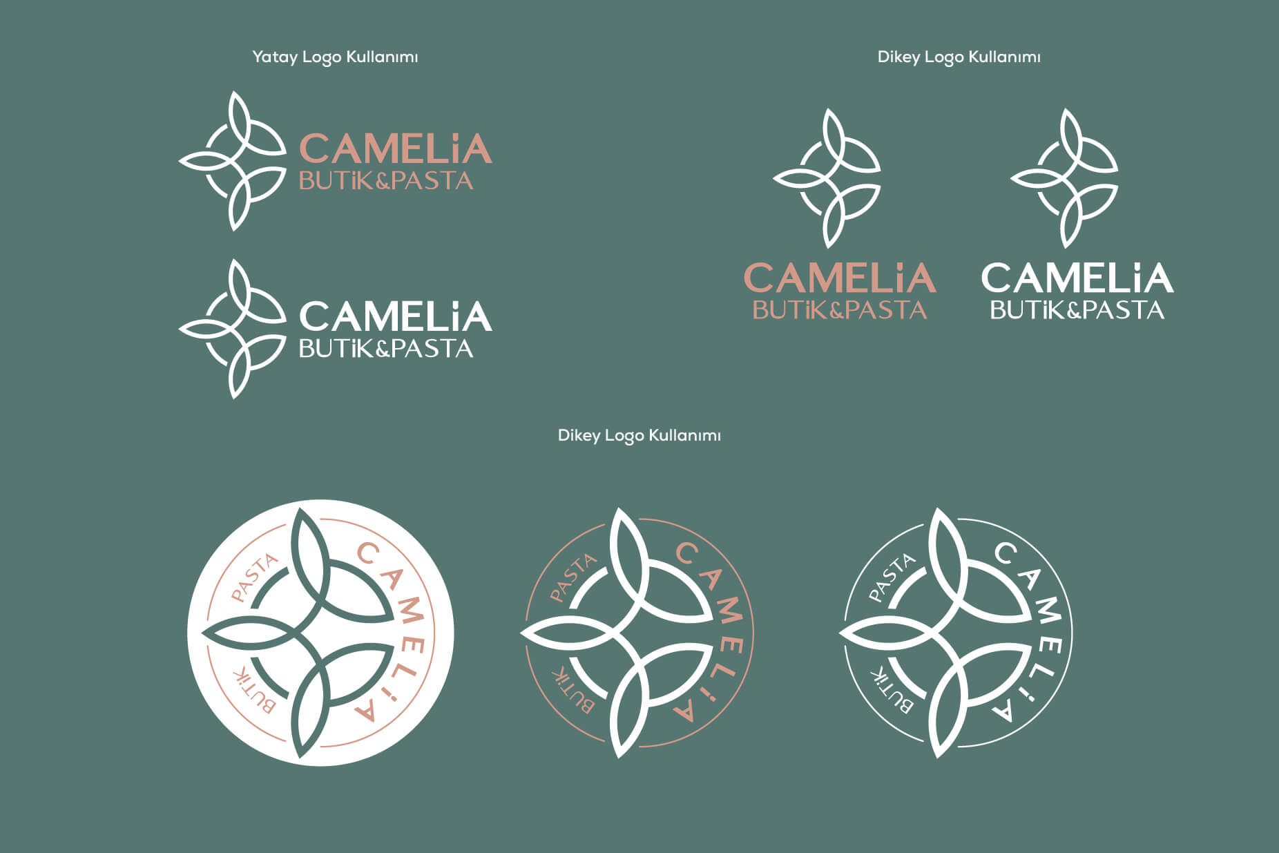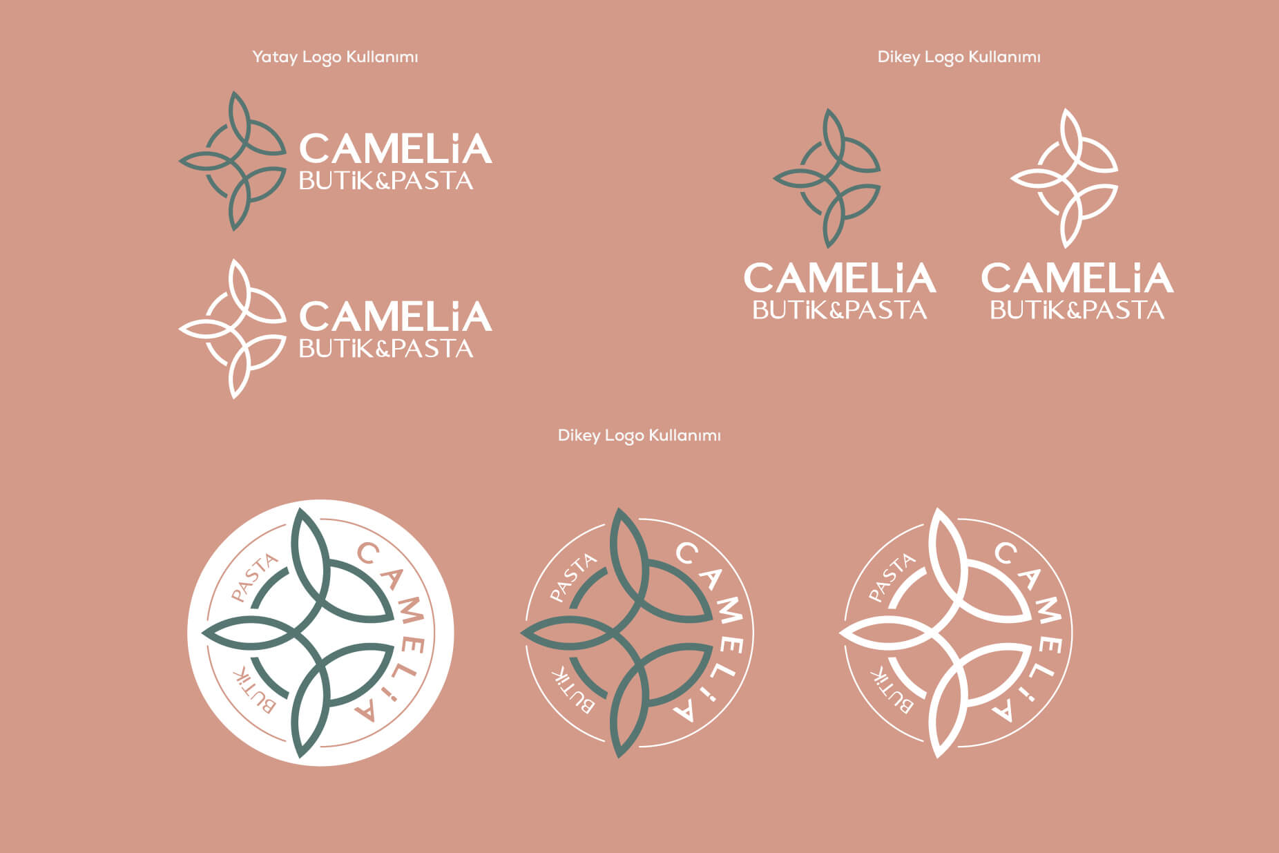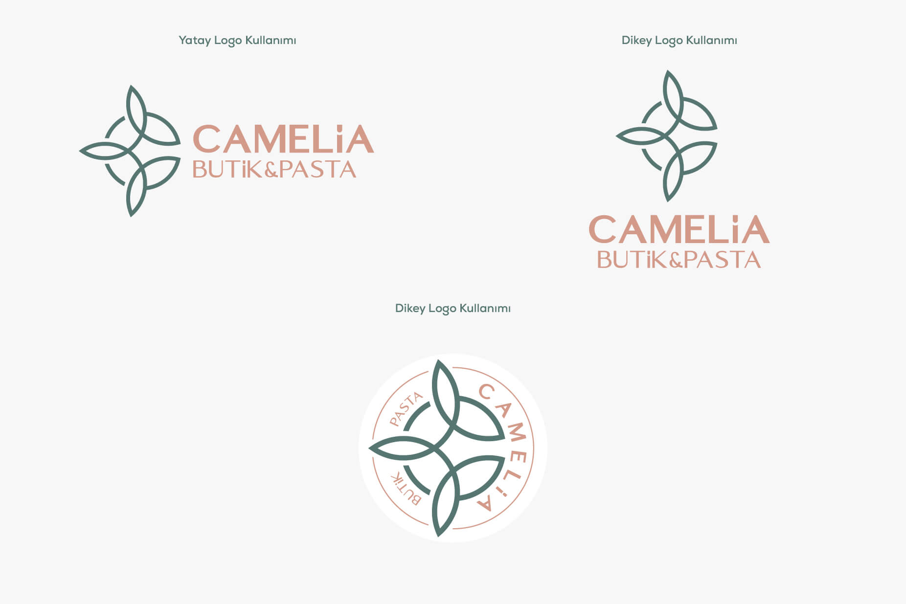 Logo rengi zihnimde belirmişti ancak logo henüz mevcut değildi. Bu nedenle hızla aklıma gelen fikirleri eskizler çizerek döktüm. Ancak istediğim sonuçları elde edemiyordum, biraz mola verip dinlenirken marka adının ne anlama geldiğine dikkat ettim. Camelia'nın Japon Kamelya çiçeğinden geldiğini fark ettim ve böylece logomun ilk adımını attım.