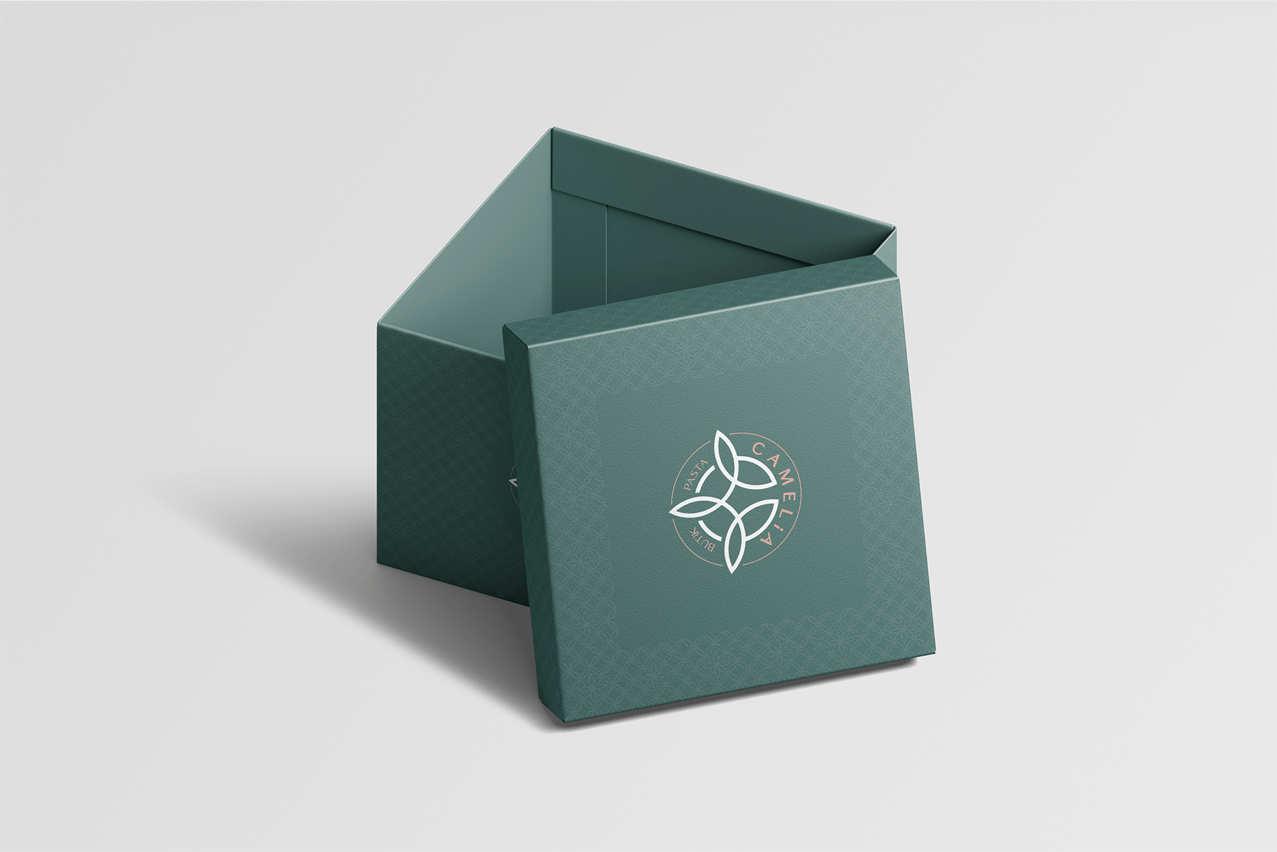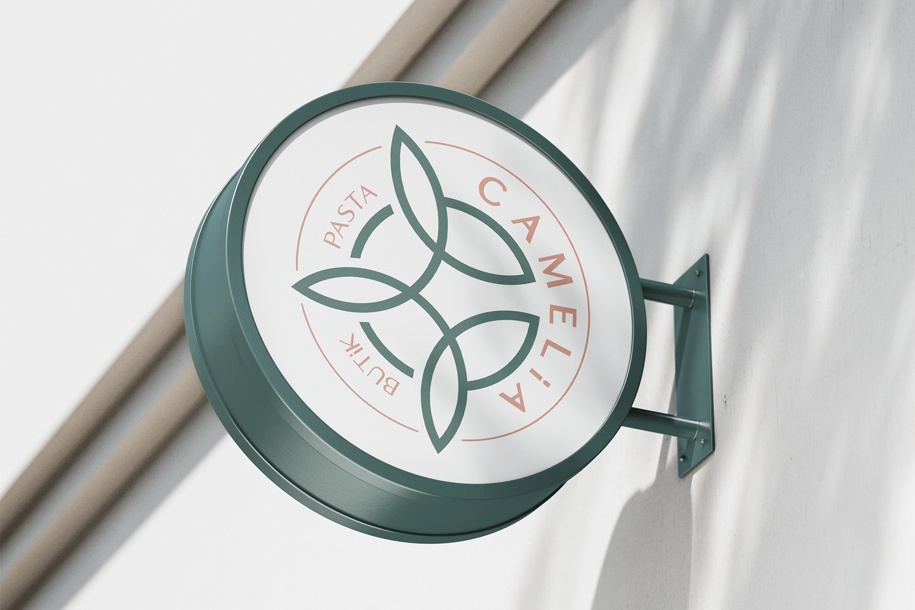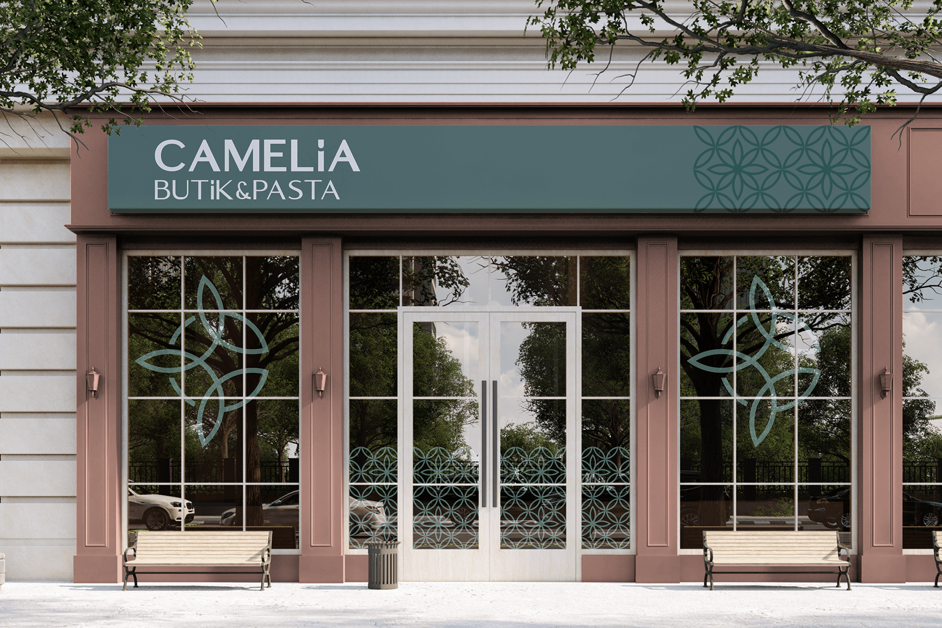 Logo rengi zihnimde belirmişti ancak logo henüz mevcut değildi. Bu nedenle hızla aklıma gelen fikirleri eskizler çizerek döktüm. Ancak istediğim sonuçları elde edemiyordum, biraz mola verip dinlenirken marka adının ne anlama geldiğine dikkat ettim. Camelia'nın Japon Kamelya çiçeğinden geldiğini fark ettim ve böylece logomun ilk adımını attım.